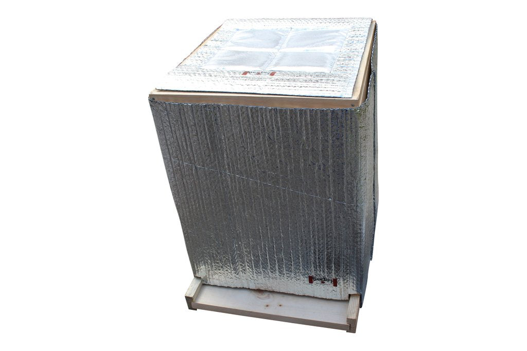 BeeDry is a radiant foil insulation hive wrap, with a top cover insert, moisture control pillow. BeeDry helps keep air at a constant temperature inside the hive by reflecting (97% of) the radiant heat of bees back to the cluster, at the same time reflecting (97%) outside temperatures away from the hive. Reusable each season. (Pillow Top sold separately)