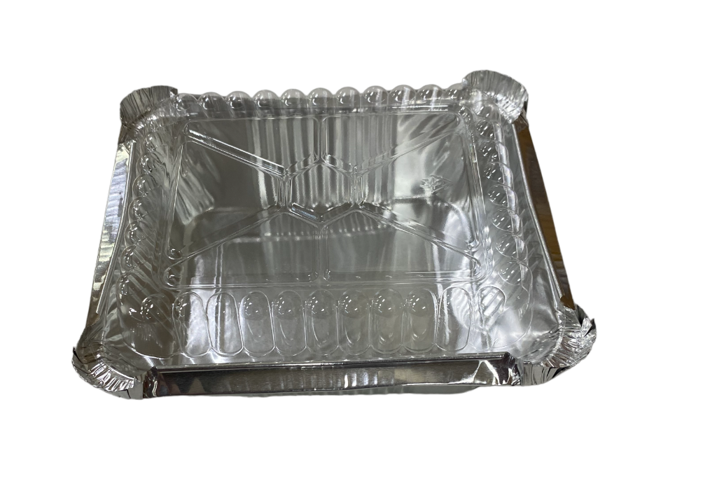 Foil comb honey container with clear lid. Crimp the edges to close.