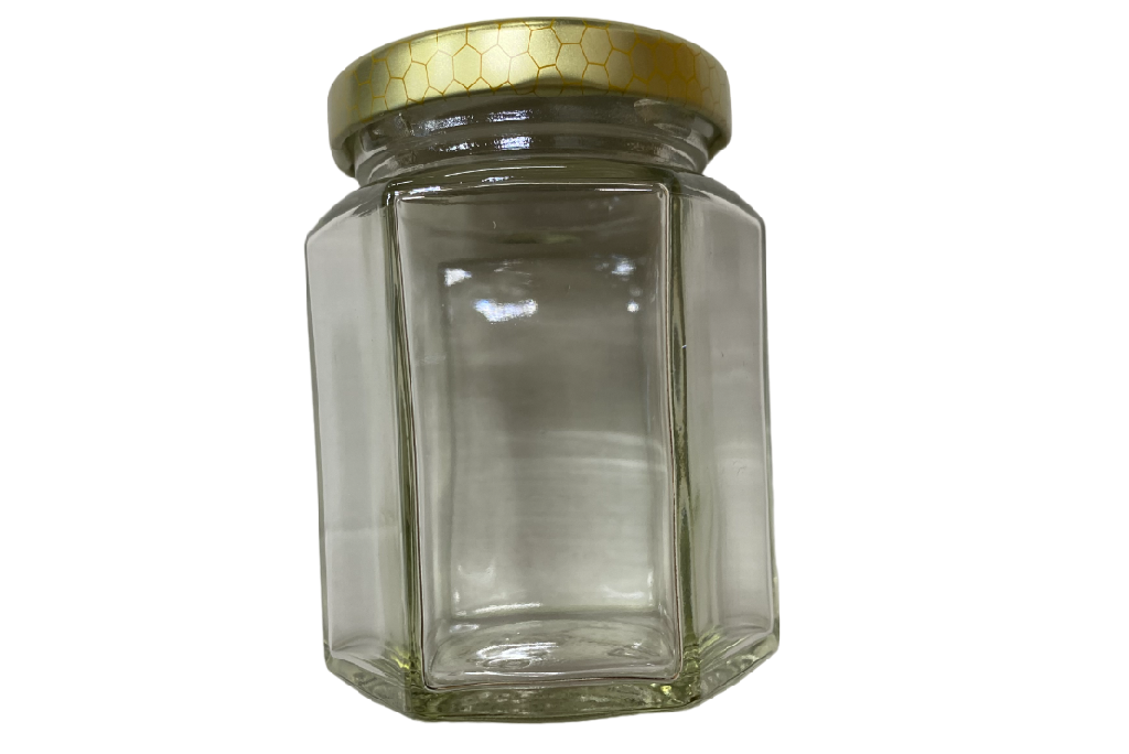 Sold in a case of 12, these jars are shaped like a honeycomb and can hold 190ml of honey.