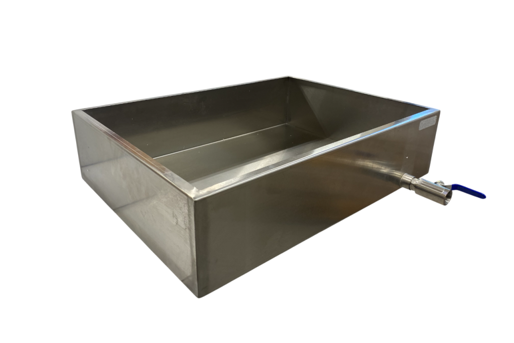 Heavy gauge stainless steel pan for boiling sap. Comes with drain valve and Teflon tape for installation.