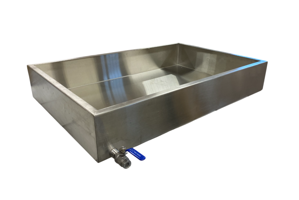 Heavy gauge stainless steel pan for boiling sap. Comes with drain valve and Teflon tape for installation.