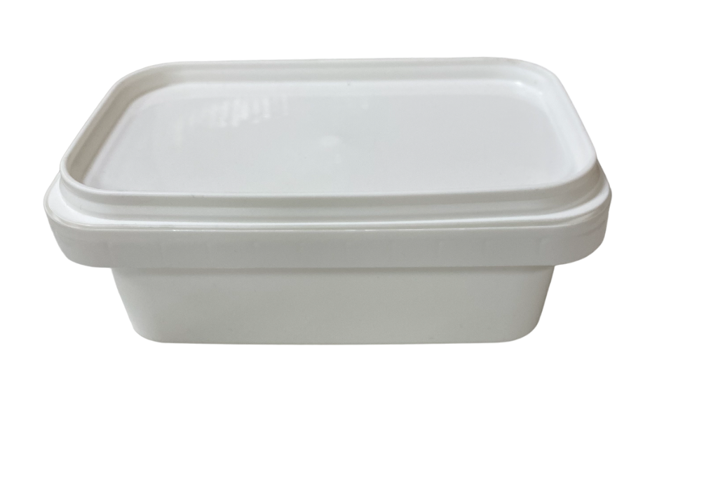 Food grade plastic honey container. Could be used for liquid, comb, or creamed honey. Dimensions: 5 1/4" L x 3 1/2" W x 2" D